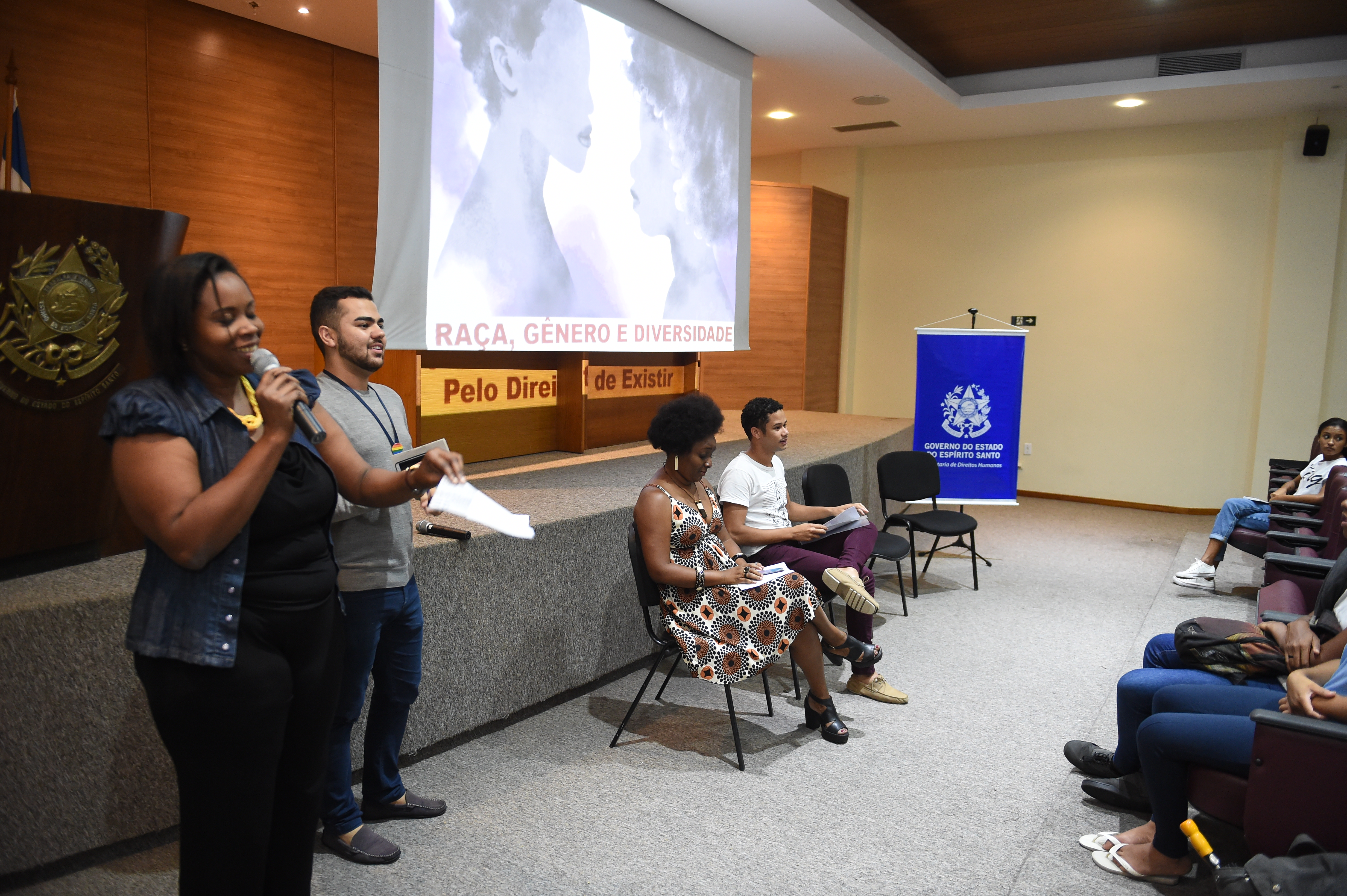 Como mediadores do debate, participaram o gerente de Diversidade Sexual e Gênero da SEDH, Renan Cadais, e a representante da Gerência de Políticas de Igualdade Racial, Edineia Conceição de Oliveira.