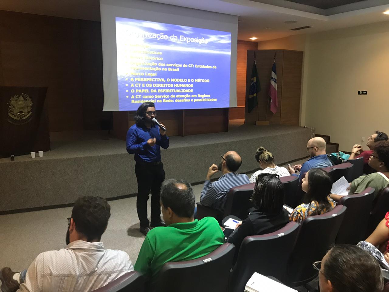 O primeiro palestrante do dia, o psicólogo clínico Glauber Alvarenga Rezende, que também é especialista em Dependência Química pela Universidade Federal do Espírito Santo (Ufes), fez um resgate histórico abordando o surgimento e o desenvolvimento das comunidades terapêuticas e como elas chegaram ao Brasil.