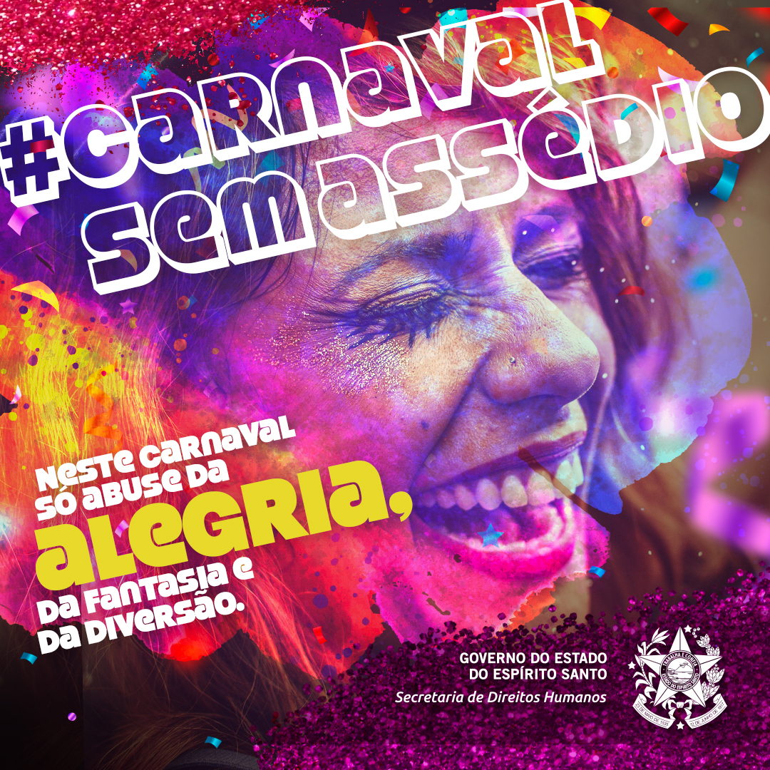 Para alertar e conscientizar sobre atitudes impertinentes e desrespeitosas durante a folia, a Secretaria de Direitos Humanos (SEDH) lança, nesta sexta-feira (14), a campanha de conscientização para o Carnaval 2020 intitulada #CarnavalSemAssédio.