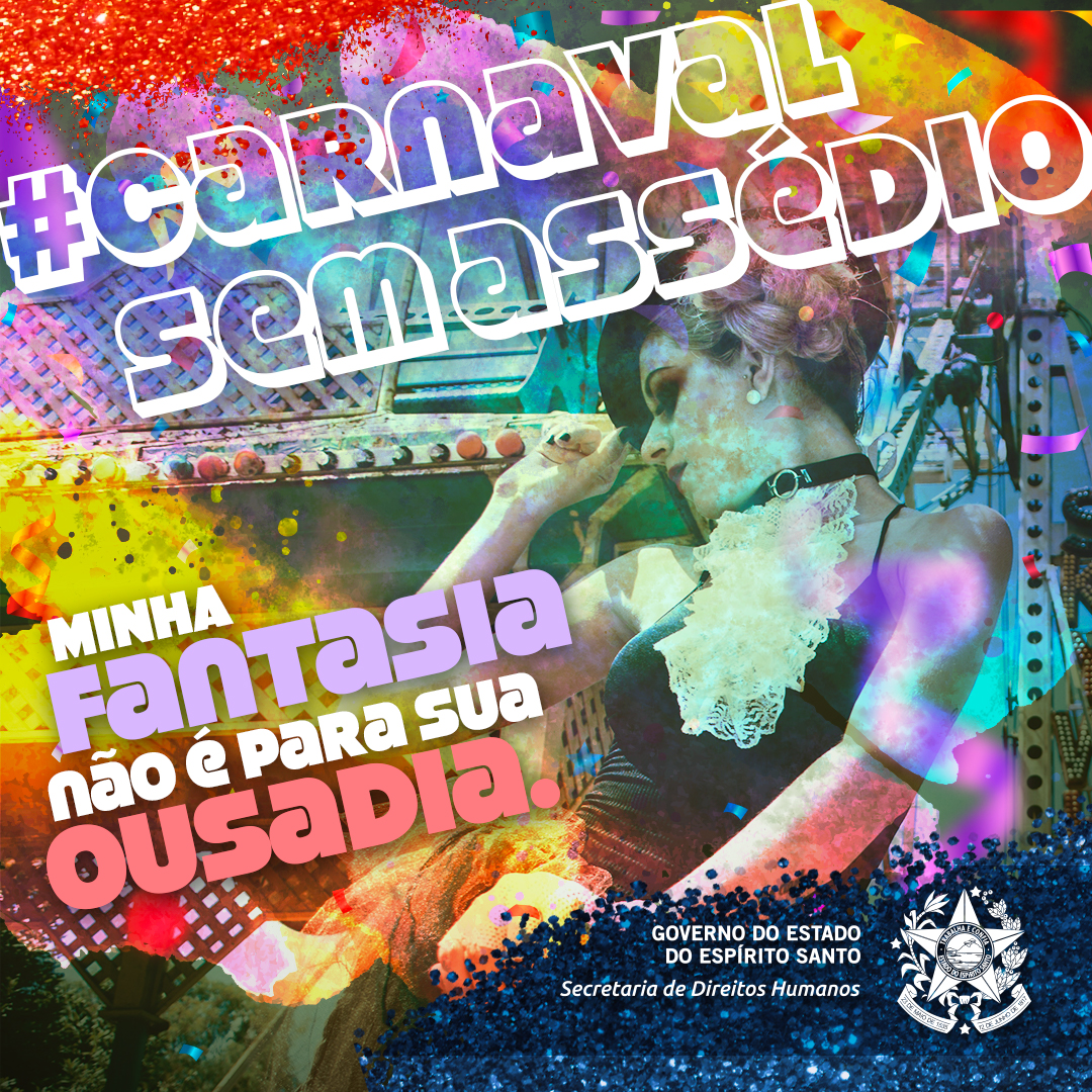 A campanha será publicada na página do Facebook @DireitosHumanosES com frases como “Meu corpo não é folia de ninguém”, “Minha fantasia não é convite para nada! ”, “No Carnaval, não deixei o respeito em casa”.