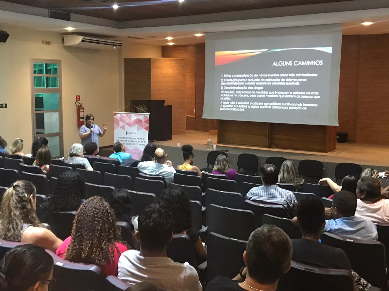 O l Seminário Estadual sobre Encarceramento em Massa e Desinstitucionalização de Adolescentes, organizado pelo Comitê Estadual para a Prevenção e Erradicação da Tortura no Espírito Santo (Cepet/ES), reuniu cerca de 50 pessoas no auditório do Palácio da Fonte Grande, no Centro de Vitória, nesta sexta-feira (13). O evento fez parte da programação da XI Semana Estadual de Direitos Humanos.