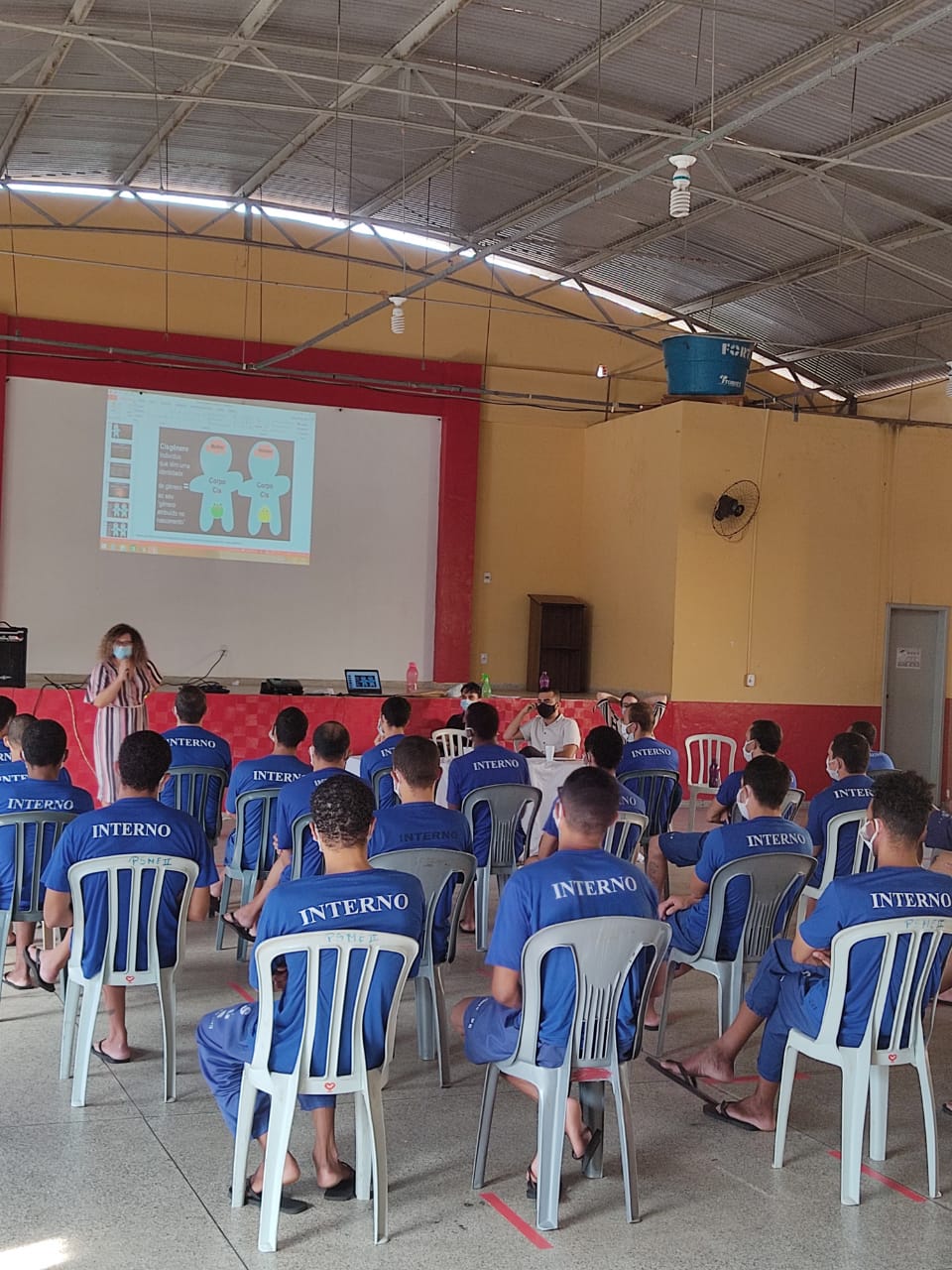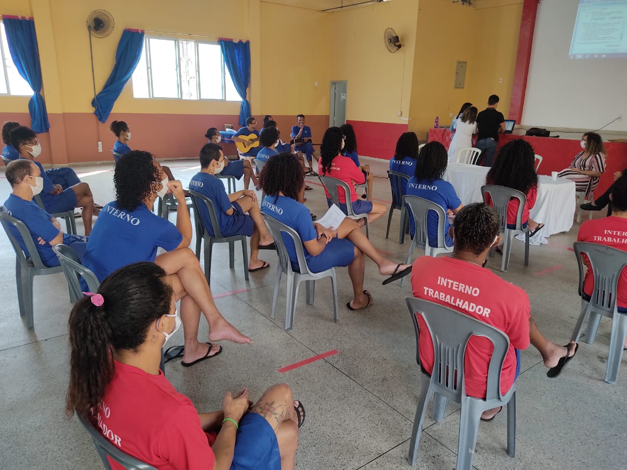 A cada dia de cursos, a equipe responsável também faz atividade de escuta com a população GBT em privação de liberdade, sendo uma galeria por vez. Está sendo também aplicado um questionário de levantamento de dados da situação com todas as mulheres trans/travestis e homens cis gays e bissexuais na unidade.