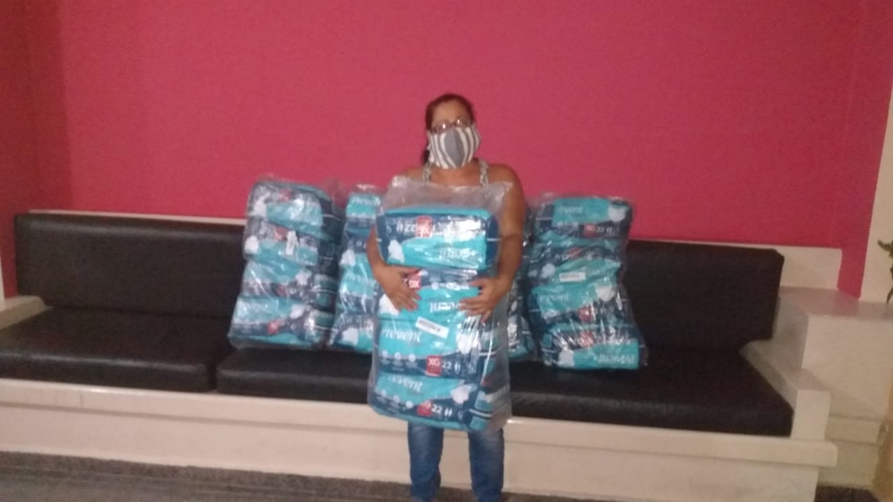 Também foram realizadas entregas de fraldas geriátricas em instituições de Aracruz, Marechal Floriano, Muqui e Viana.