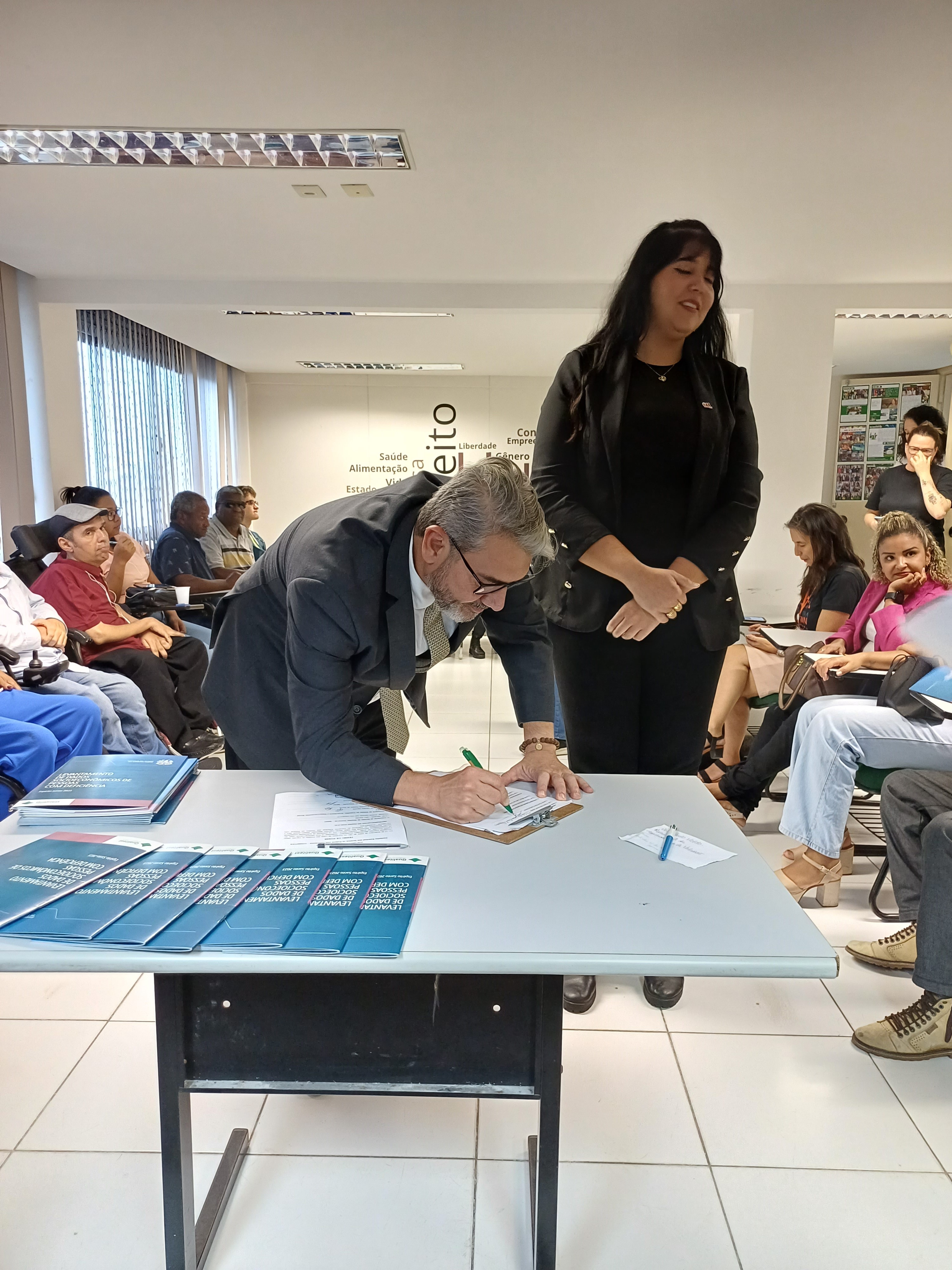 Além da posse dos novos integrantes do Conselho, a SEDH entregou o Levantamento de Dados SocioEconômicos de Pessoas com Deficiência elaborado pela Secretaria. O material proporciona uma visão abrangente e atualizada sobre as condições de vida, os desafios e as necessidades específicas desse grupo populacional.