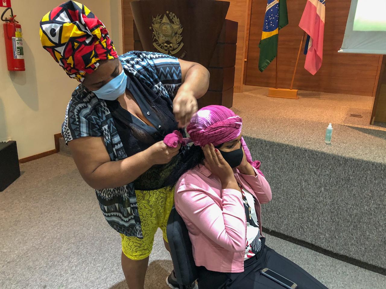 A ideia da Oficina de Turbante foi da gerente de Políticas de Promoção da Igualdade Racial da SEDH, Edineia Conceição de Oliveira. Ela contou que sempre que se arrumava com o acessório para o trabalho, várias colegas mostravam interesse em aprender.