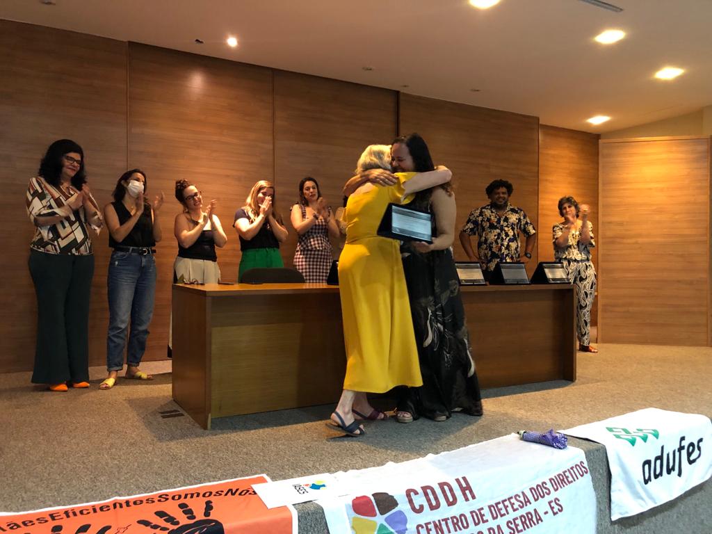 A vice-governadora do Estado, Jacqueline Moraes, e a secretária de Estado de Direitos Humanos, Nara Borgo, prestigiaram a solenidade e fizeram parte da composição da mesa de cerimônia, assim como a presidenta do CEDH, Galdene Santos, e a promotora de Justiça Cláudia Garcia, que representou a procuradora-geral de Justiça do Ministério Público Público do Espírito Santo, Luciana Andrade.