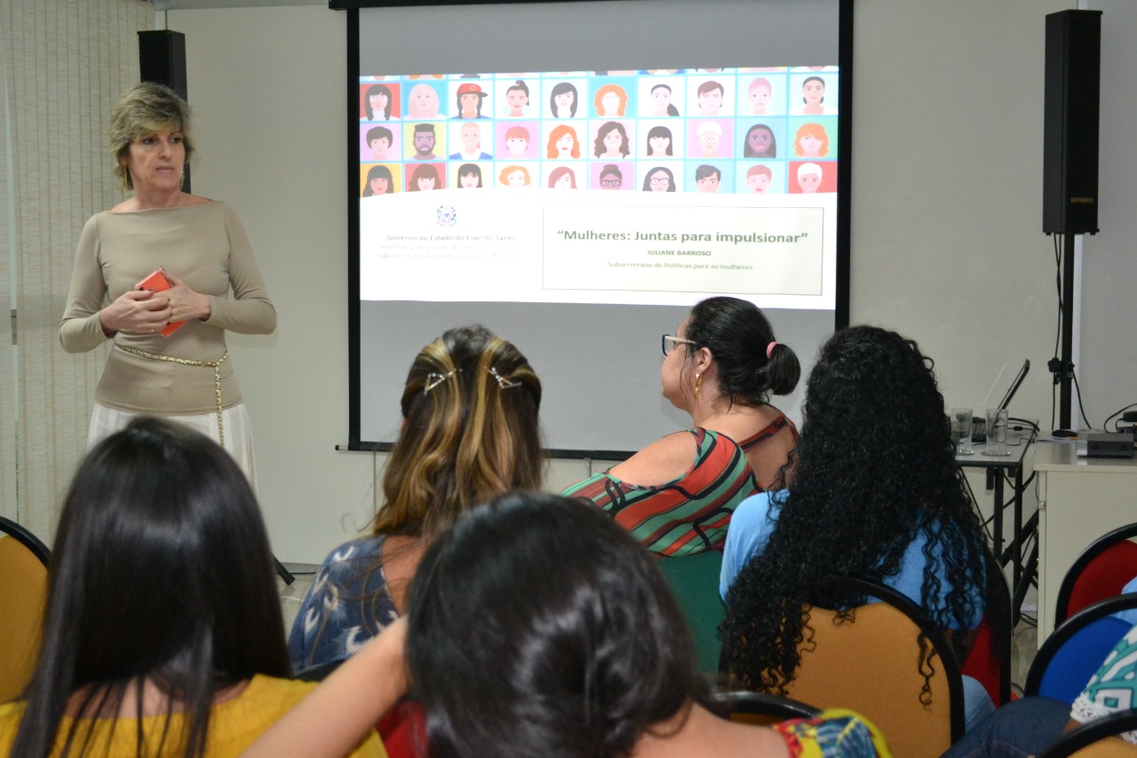 A palestrante foi a psicóloga Bernadete Baltazar, da Subsecretaria de Políticas Para Mulheres (SUBPM), vinculada à Secretaria de Direitos Humanos (SEDH). A psicóloga explicou o Pacto Estadual pelo Enfrentamento à Violência contra as Mulheres, que é um documento orientador para a elaboração das políticas públicas voltadas para as mulheres no Espírito Santo. “Uma conquista”, de acordo com Bernadete Baltazar.