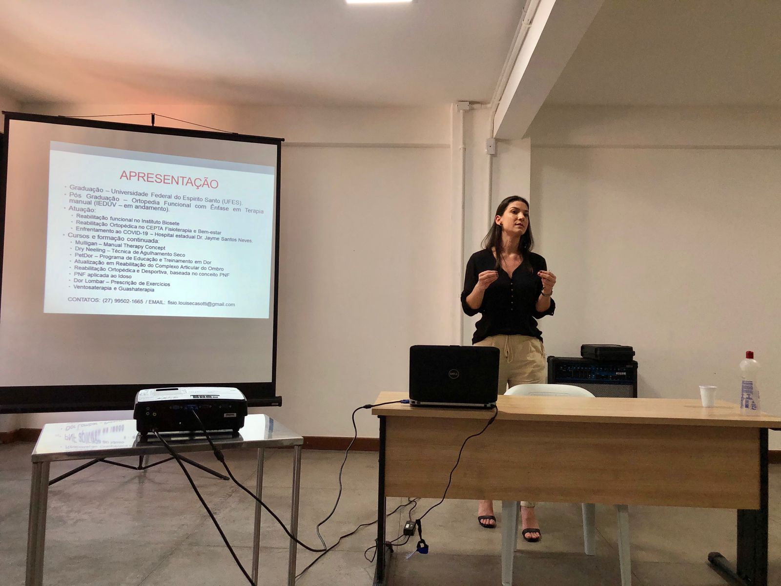 Dando prosseguimento à capacitação, a fisioterapeuta Louise Flores abordou a reabilitação de dependentes químicos com o papel da fisioterapia, enfatizando a importância e os benefícios da atividade física para essas pessoas.
