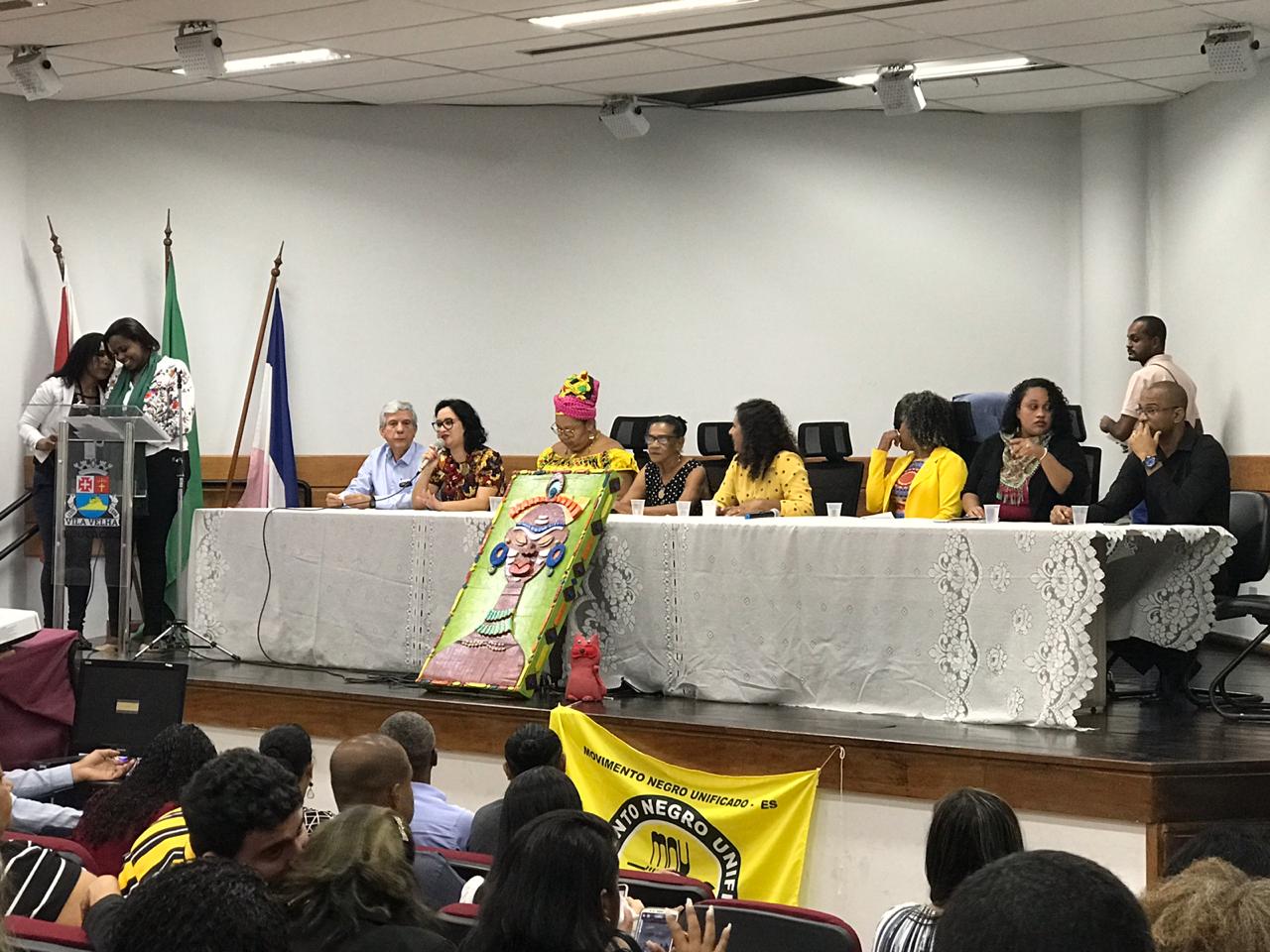 Também formaram a mesa o secretário municipal de Governo e Coordenação Institucional de Vila Velha, Saturnino Mauro, e a coordenadora de Estudos Africanos, Afro-Brasileiros e Indígenas (Ceafri) de Vila Velha, Alessandra Machado Fonseca.